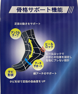 ソックス側の【足袋ソックス】:足親指を独立機能させやすくする高機能ソックス