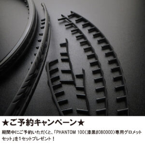 下記のページよりご予約いただくと、「PHANTOM 100(漆黒#080000)専用グロメットセット」を1セットプレゼント!