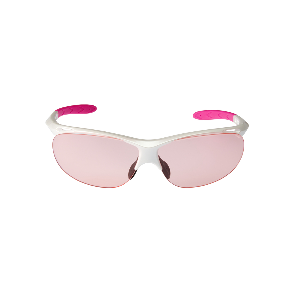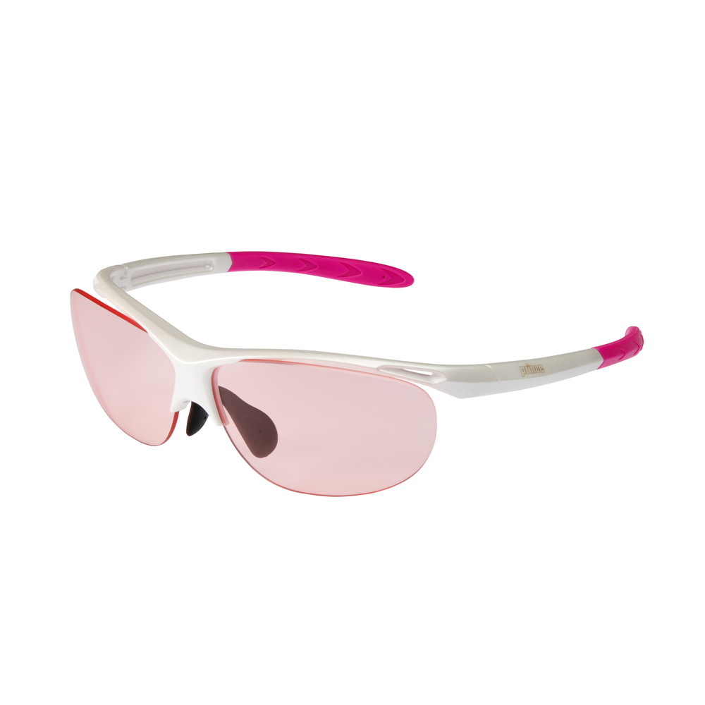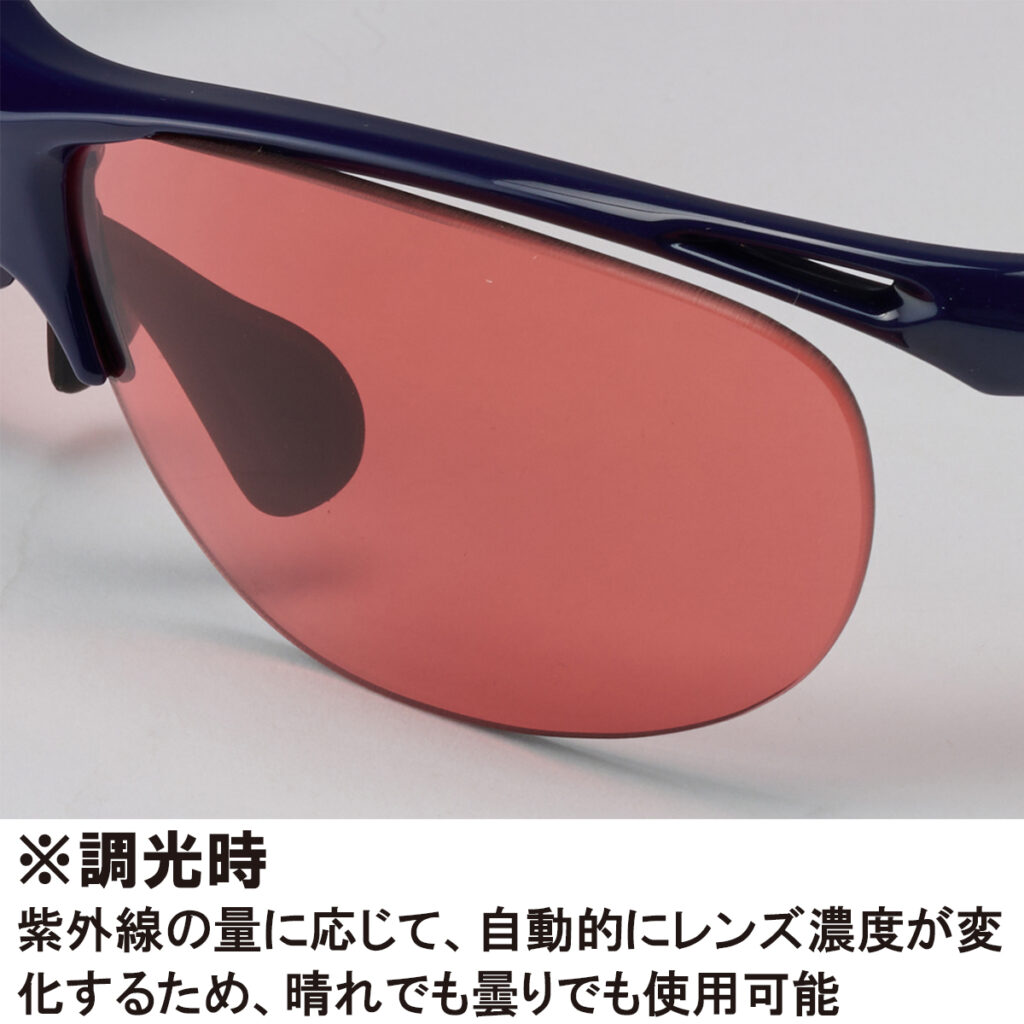 紫外線の量に応じて、自動的にレンズ濃度が変化するため、晴れでも曇りでも使用可能。イエローボールの視認性が高いピンクレンズを搭載。
