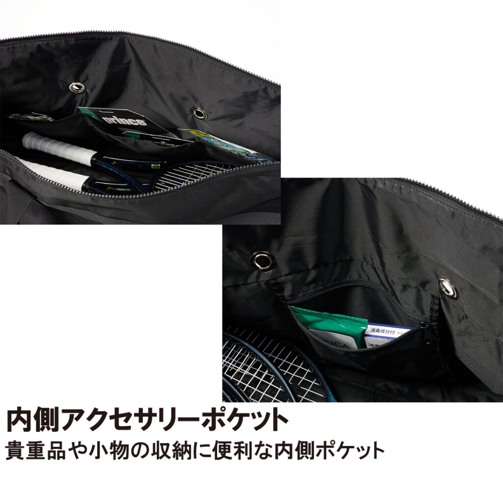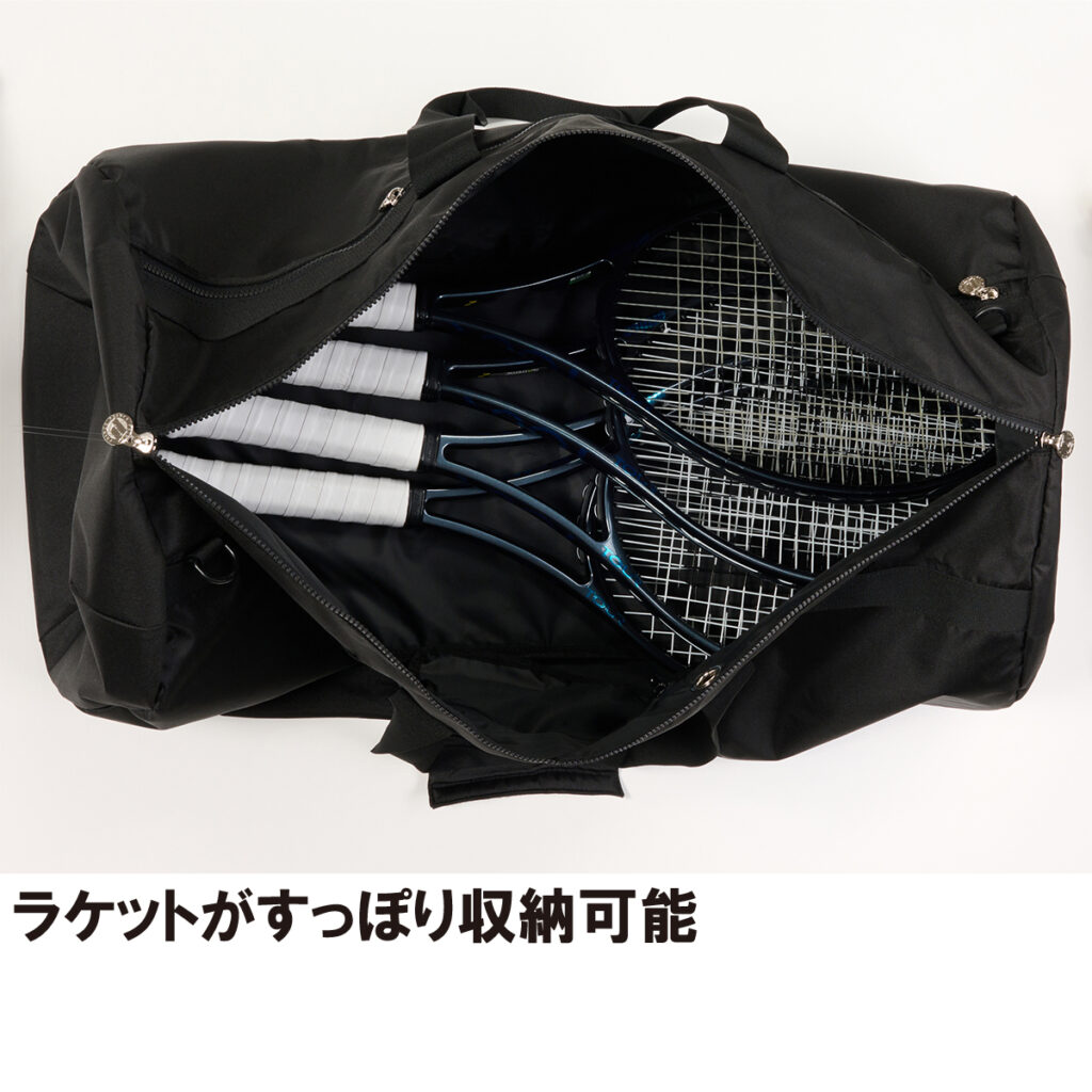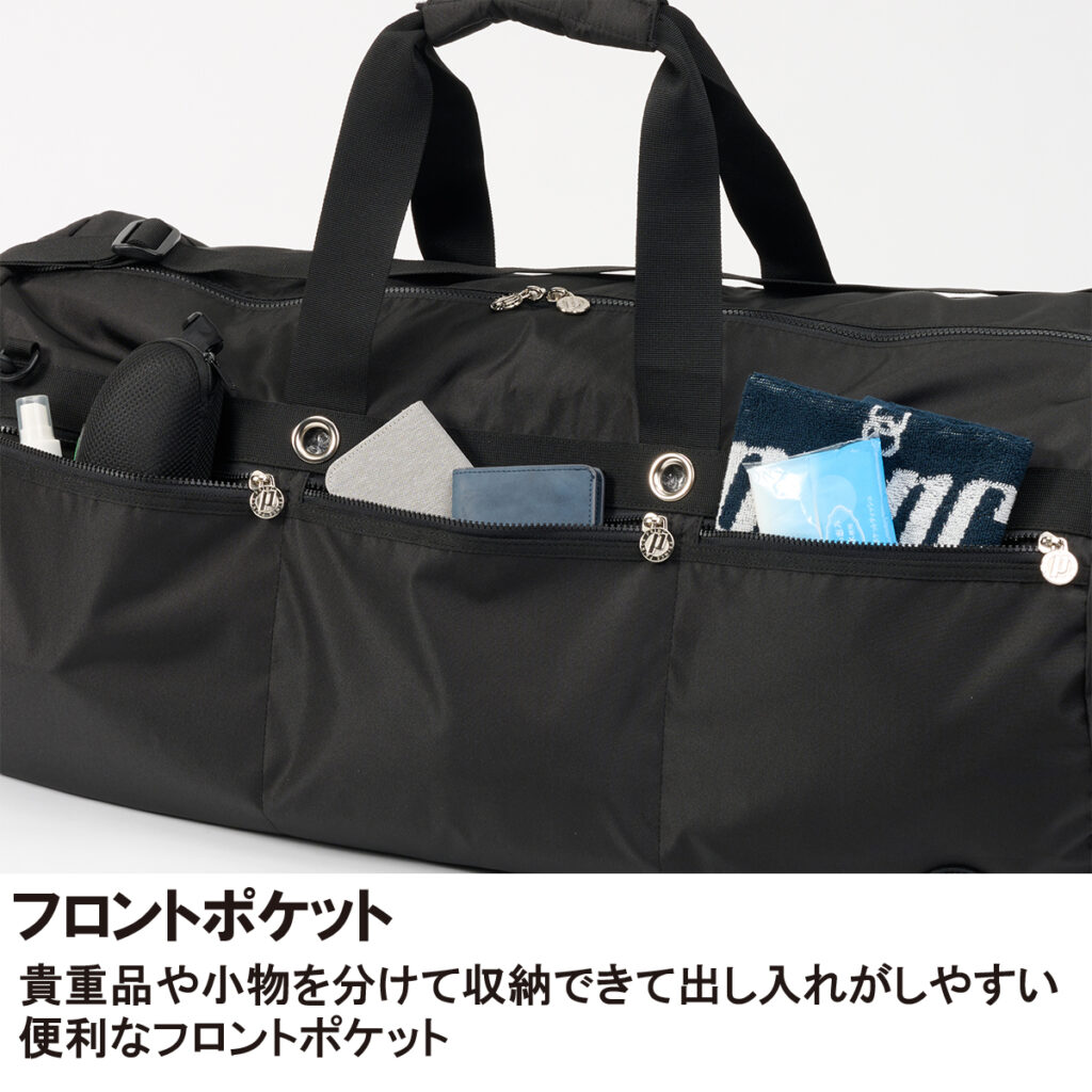 洗練されたオールブラックで統一されたスタイリッシュなデザインが特徴。シーズンを問わない汎用性の高いボストンバッグ