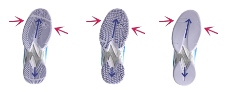 女性の脚力を考え、従来モデルに加えてフレックスポイントを追加。より屈曲性が上がり、更に素早い蹴り出しを実現。